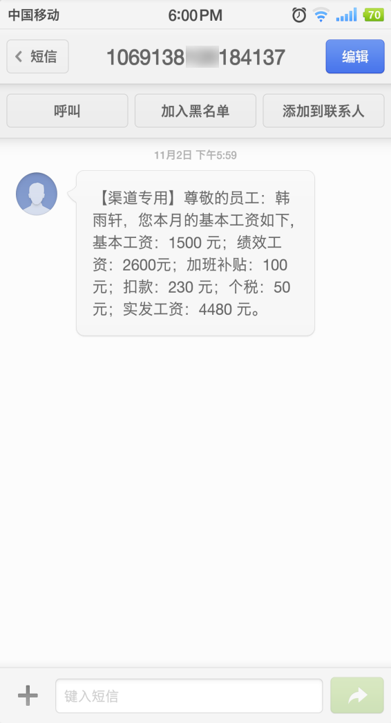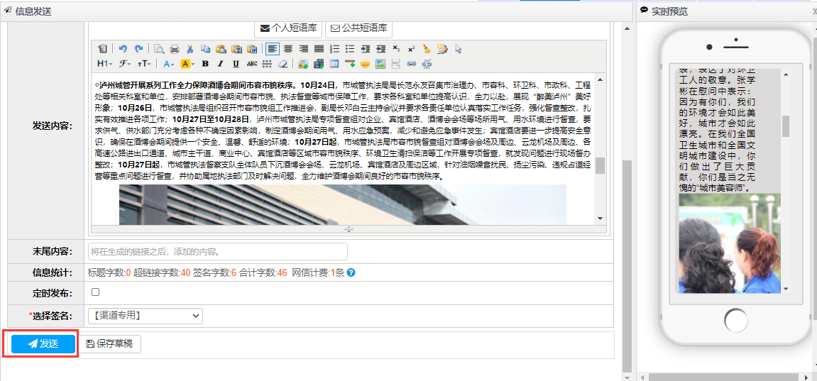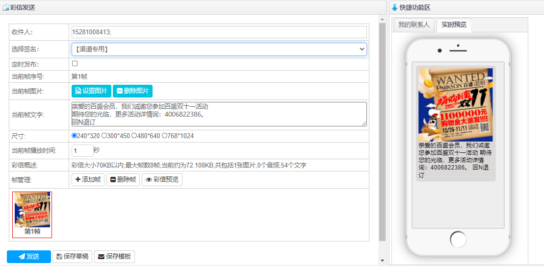 亮点:平台支持短信换行功能,下发短信内容重点突出,职责划分;