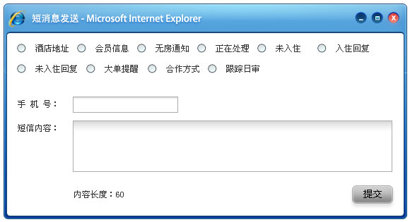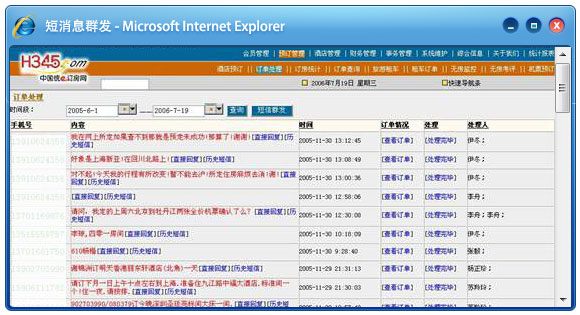3)网上提交酒店预定单后自动短信通知
